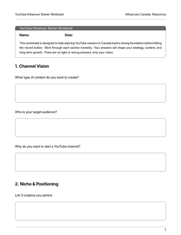 YouTube Influencer Starter Workbook